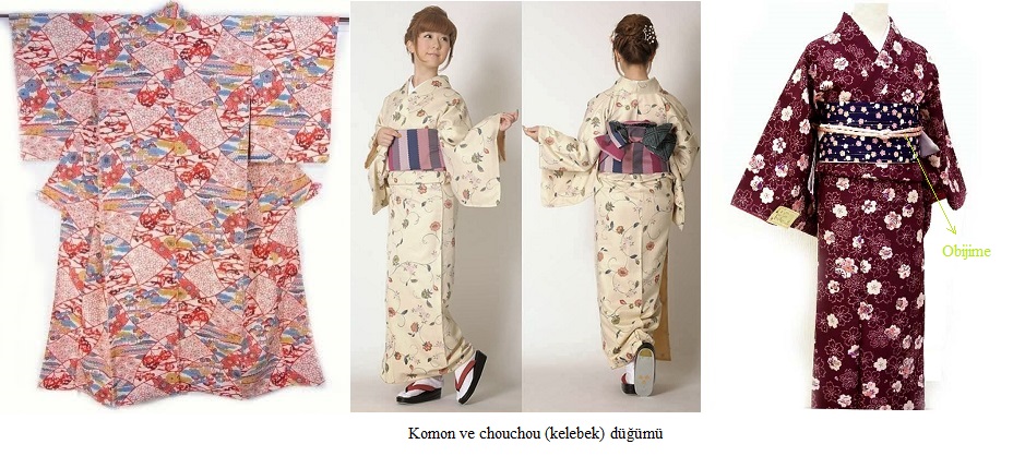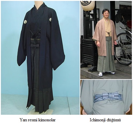 - Üçüncüsü, bayan kimonoları resmiyet derecelerine göre farklı türlere ayrılır, renk ve desen konusunda pek çok seçenek vardır. Beyler ise sade olmak zorundadırlar. Kimonoları genellikle desensizdir, bazen çizgili, kareli olabilir.