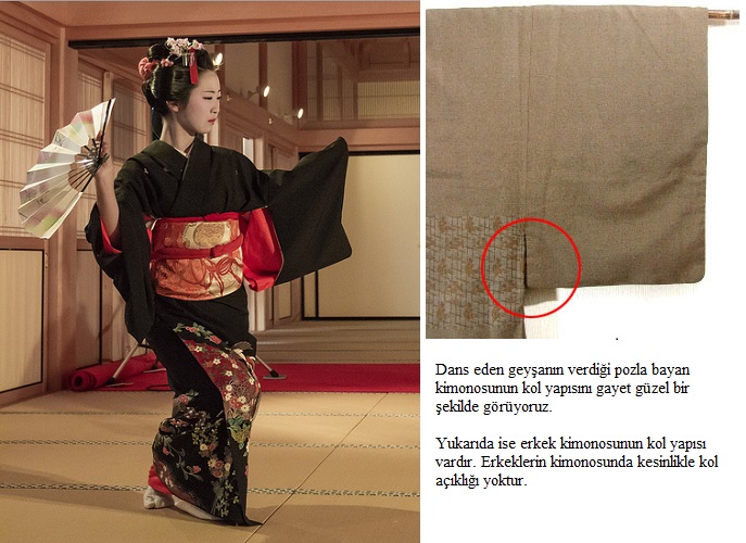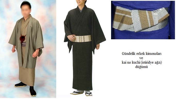 - Birincisi, bayan kimonolarının kolları gövdeye dikili değildir ve kolların arkası açıktır. Beylerin kimonosunda ise kollar gövdeye dikilidir.